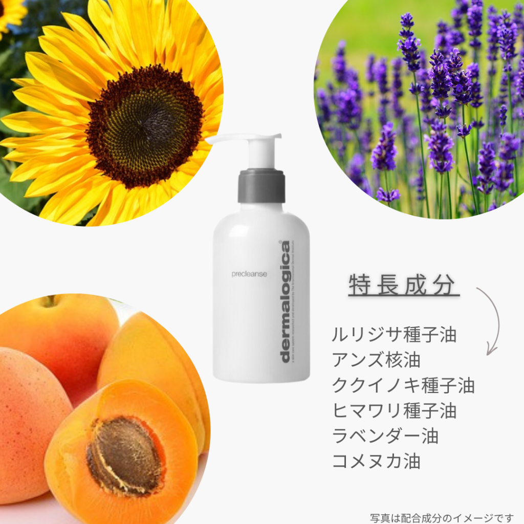 5つの植物オイルがベースプレクレンズのオイルは、アプリコット油、ククイナッツ油、ルリジサ油、ヒマワリ油、コメヌカ油がブレンドされています。